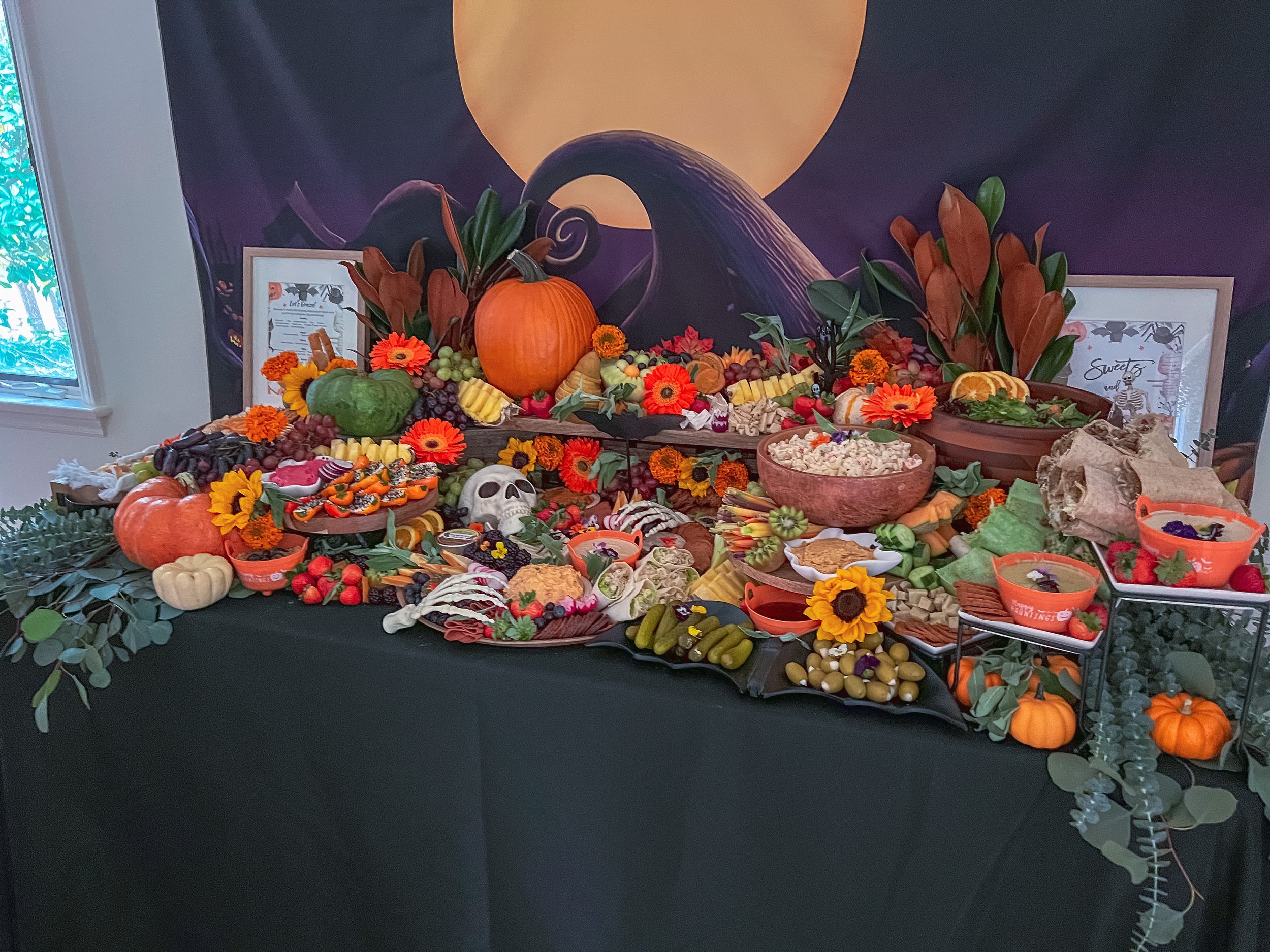 A visually stunning spread of plant based artisan cheeses, meats, fresh fruits, dips, crackers, breads, lush greenery and flowers - arranged to create an abundant centerpiece for your event. Available in a variety of sizes (from 4FT to 12 FT long) to meet your guest count.